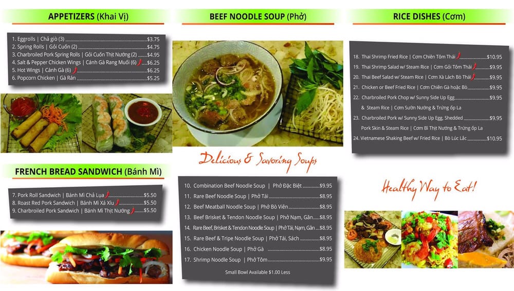 Introducing Cali Kitchen, a Vietnamese restaurant located in Nederland, TX. This unclaimed gem offers a variety of dishes with many vegetarian options. The menu includes flavorful appetizers like Popcorn Chicken and Side of Fried Rice, as well as French Bread Sandwiches filled with Egg Loaf or CharBroiled Pork. The Noodle Soups are a must-try, with options like Combination Beef or Rare Beef, Brisket & Tendon. Cali Kitchen also provides amenities such as outdoor seating, free Wi-Fi, and waiter service. You can enjoy a quiet dining experience while savoring traditional Vietnamese flavors. Don't miss out on the chance to experience the delicious offerings at Cali Kitchen - a true hidden treasure in the area.
